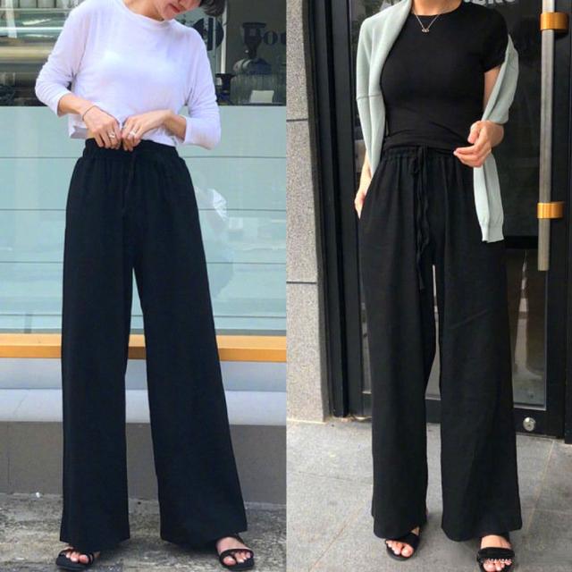 穿衣搭配也注重服饰的使用率,一衣多穿再常见不过。同一件黑色阔腿裤经过不同的搭配,会有完全不同的效果。如白色长袖T恤搭配黑色阔腿裤,经典的黑白色组合,十分耐看,同时自带高级时髦感,简简单单不出错。黑色短袖T恤搭配黑色阔腿裤,全身的黑色,需要一些调节才显时髦,小项链和肩头叠穿都是不错的调节手法。